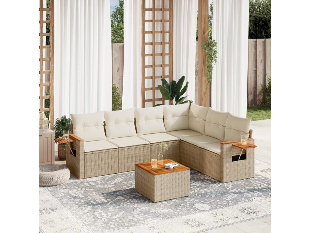 7dílná zahradní sedací souprava s poduškami béžová polyratan 3226849