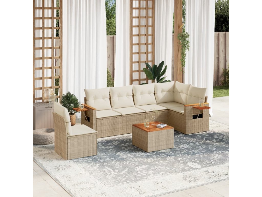7dílná zahradní sedací souprava s poduškami béžová polyratan 3226863