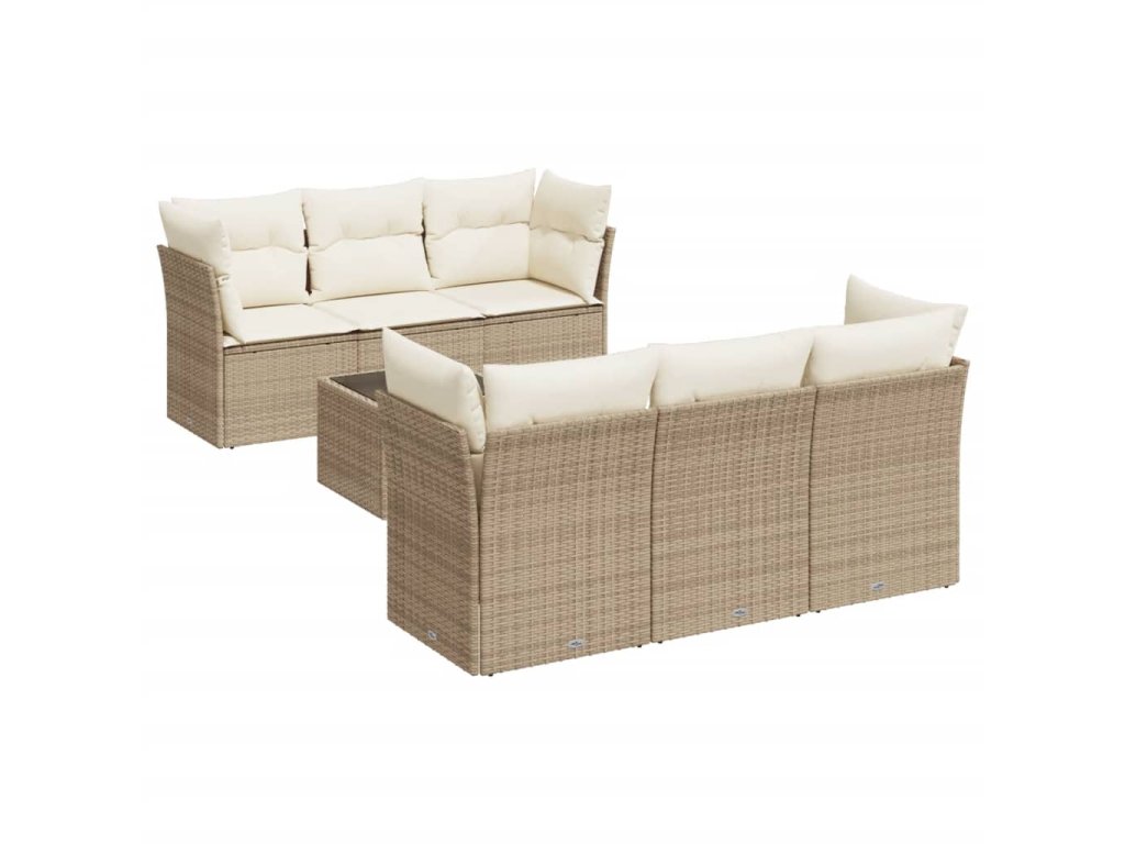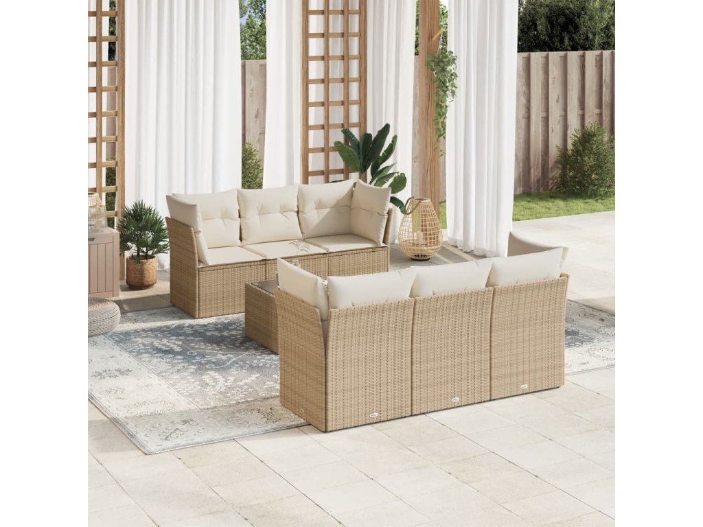 7dílná zahradní sedací souprava s poduškami béžová polyratan 3249097