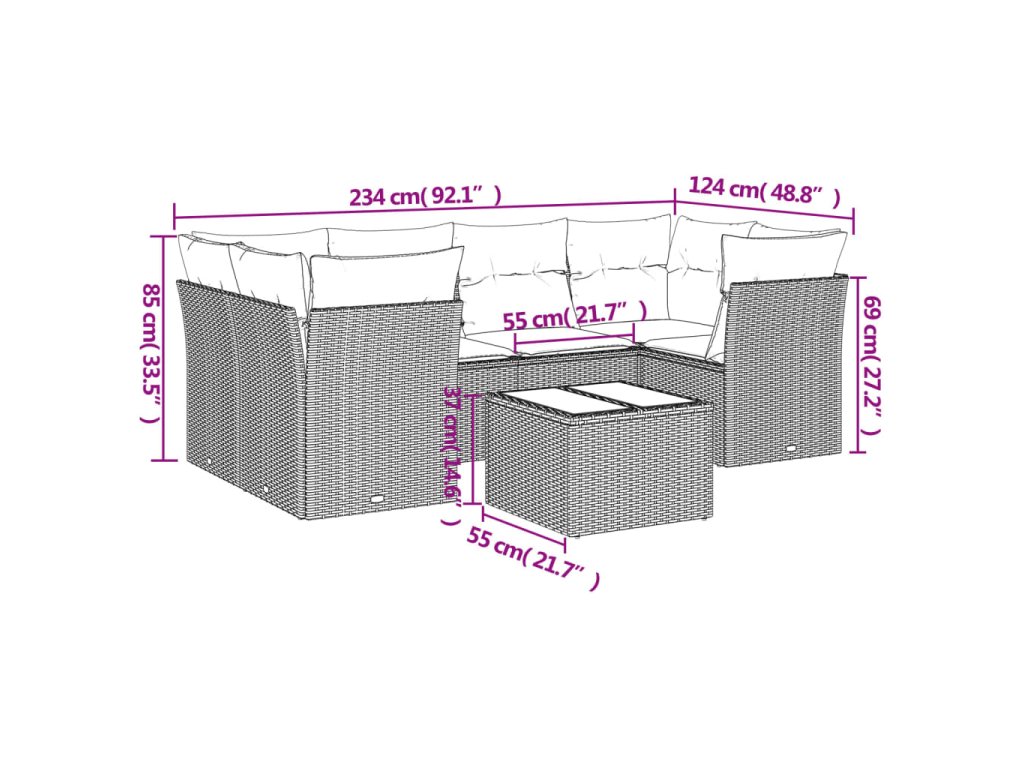 Tato zahradní sedací souprava je dokonalým doplňkem vaší zahrady, terasy nebo dvorku a poskytne vám pohodlné a příjemné místo, kde si můžete povídat s rodinou a přáteli nebo jen tak odpočívat a užívat si pobyt venku.