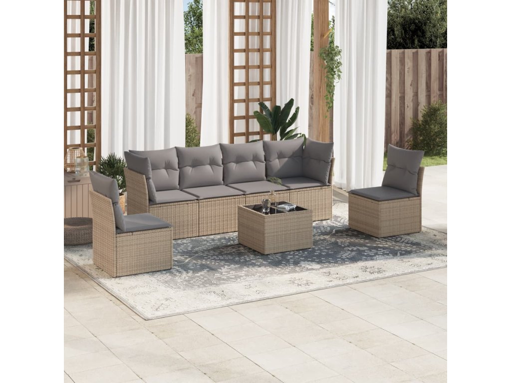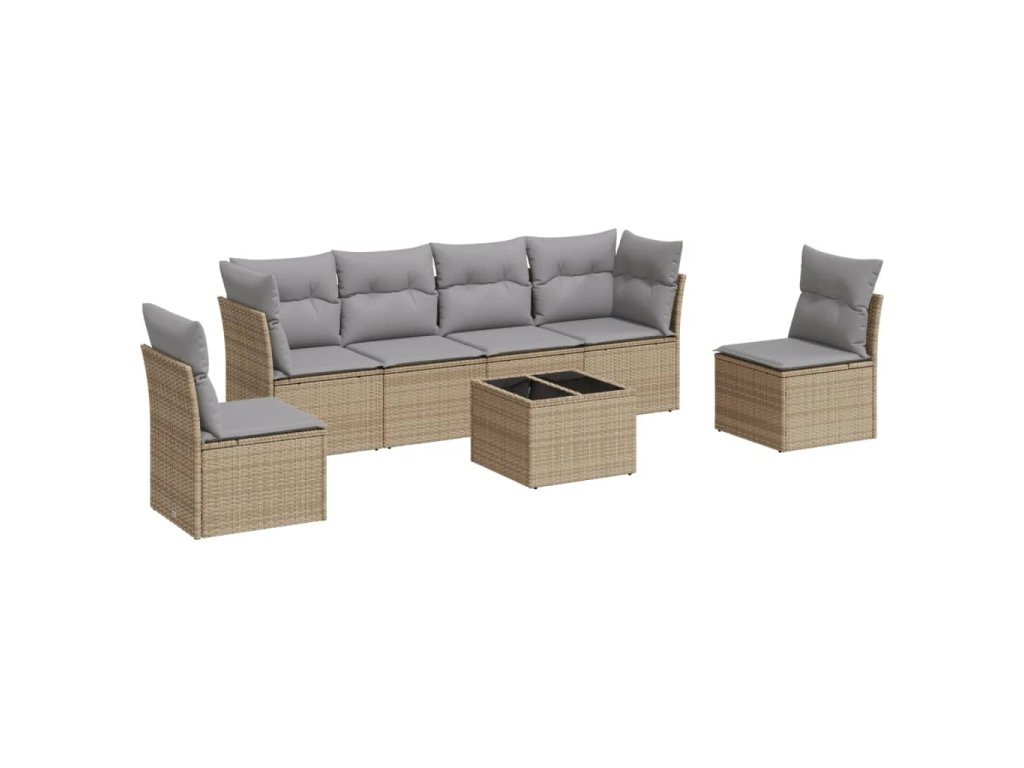 7dílná zahradní sedací souprava s poduškami béžová polyratan 3249218