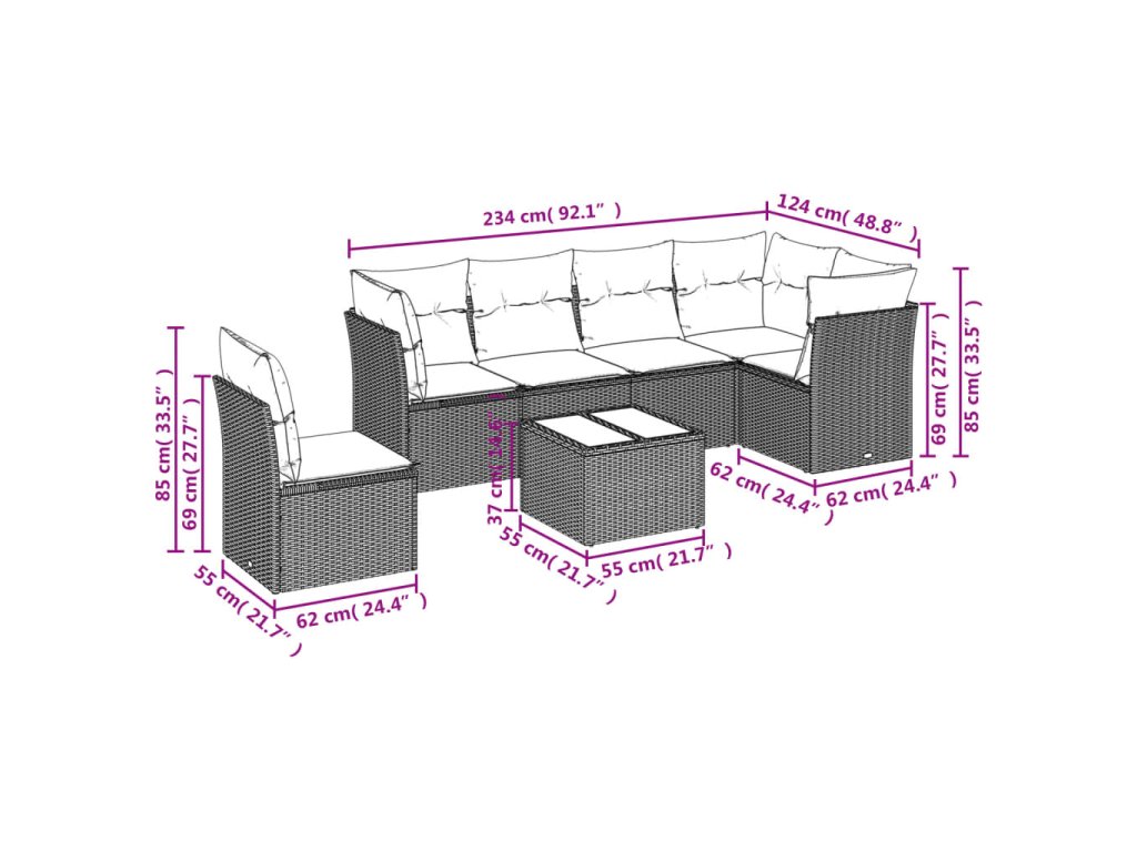 Tato zahradní sedací souprava je dokonalým doplňkem vaší zahrady, terasy nebo dvorku a poskytne vám pohodlné a příjemné místo, kde si můžete povídat s rodinou a přáteli nebo jen tak odpočívat a užívat si pobyt venku.