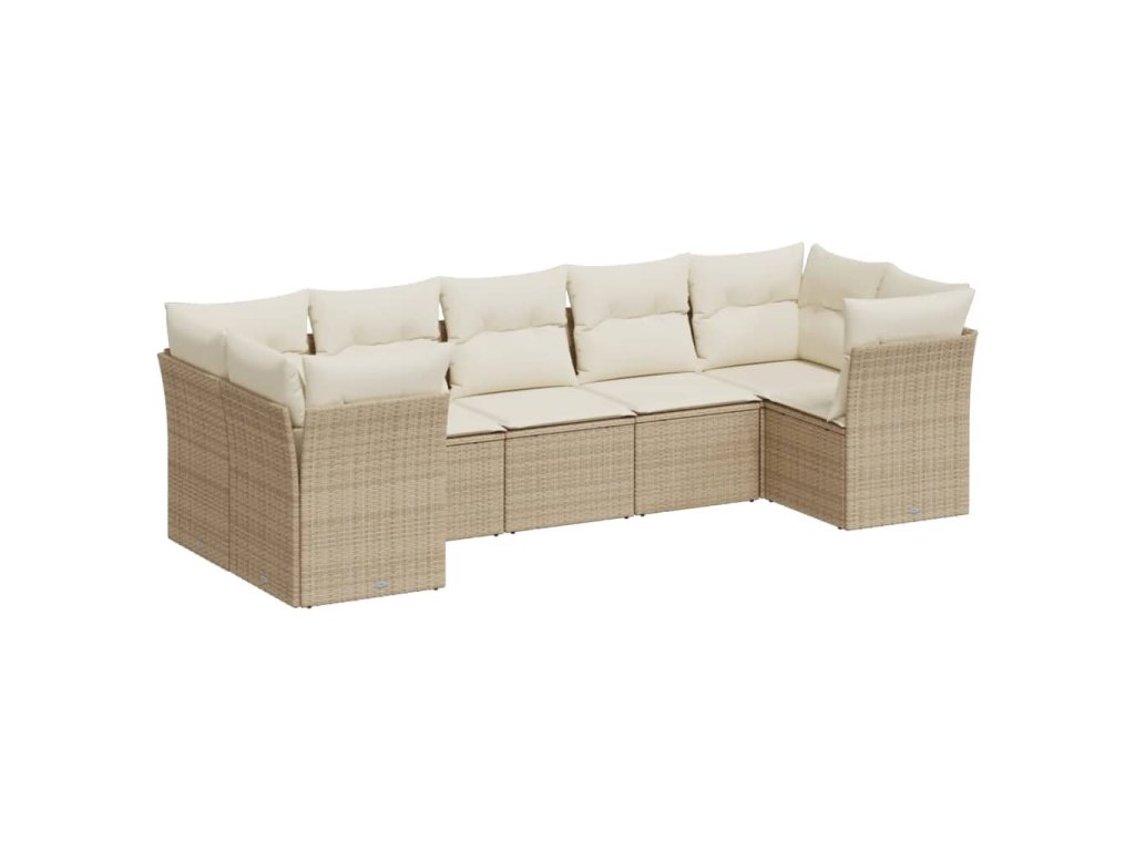 7dílná zahradní sedací souprava s poduškami béžová polyratan 3249957
