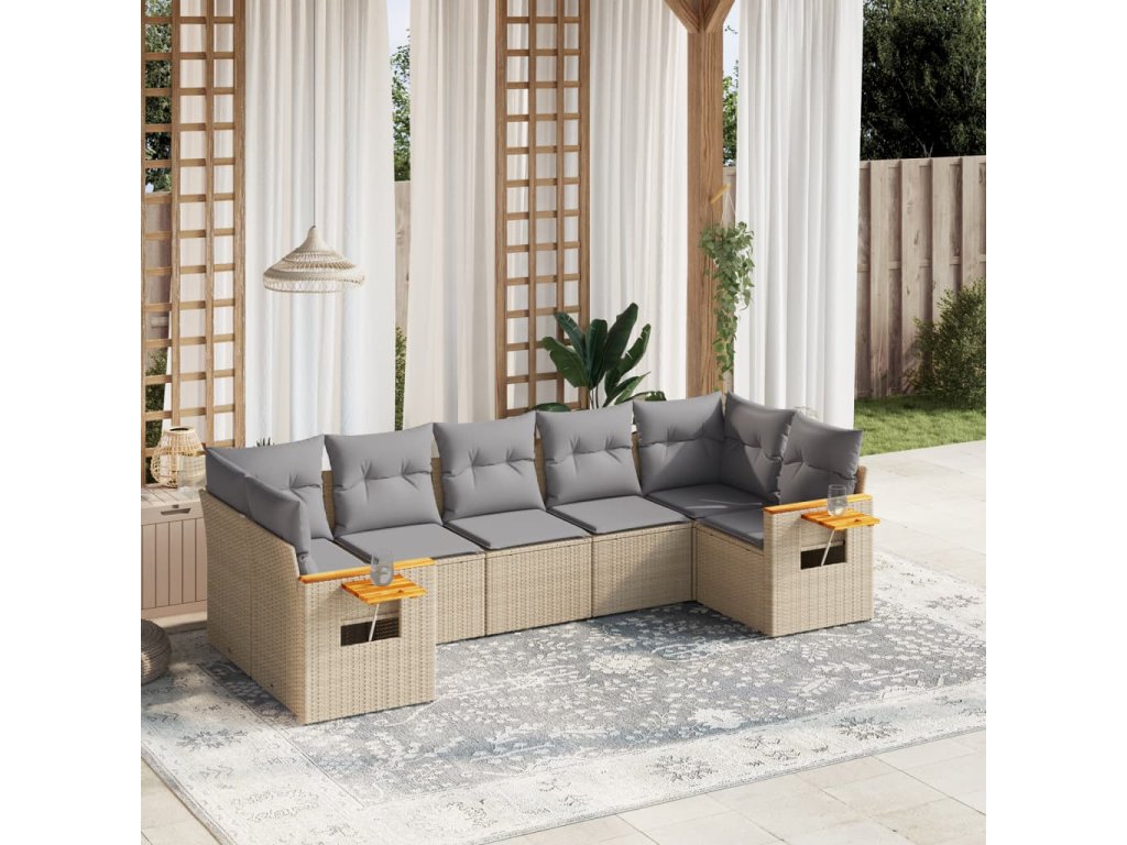 7dílná zahradní sedací souprava s poduškami béžová polyratan 3259511