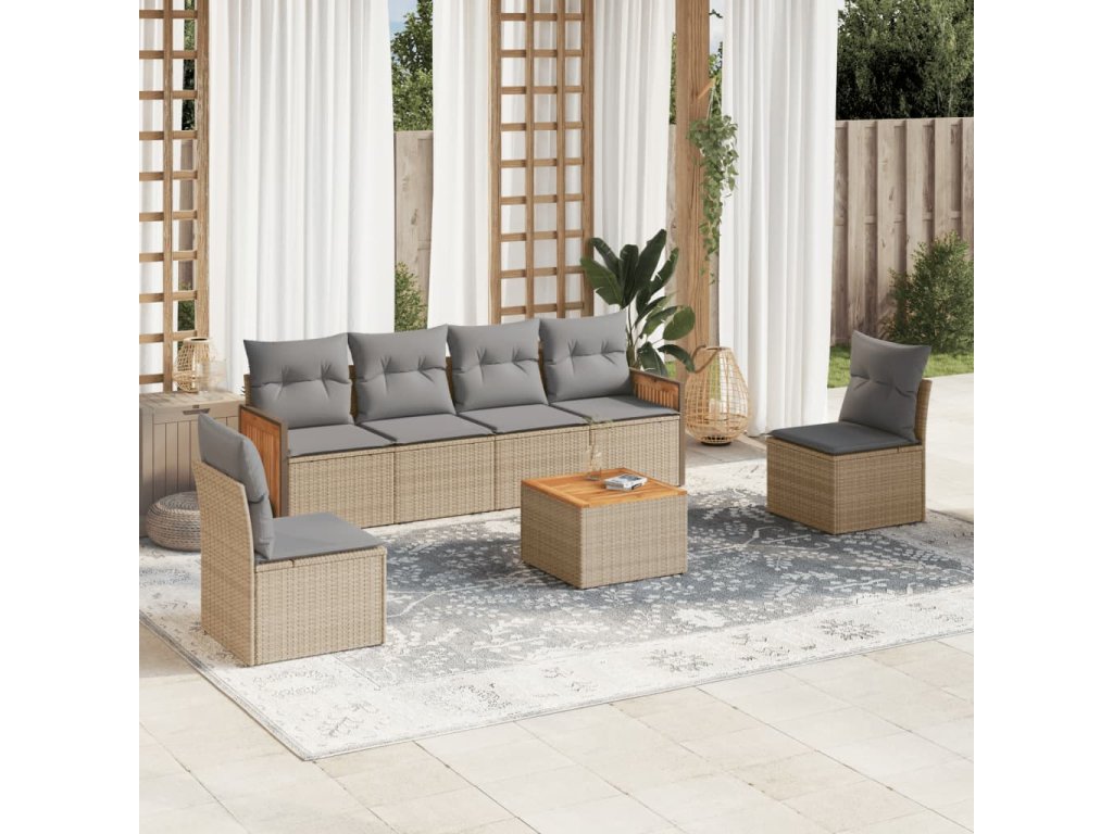 7dílná zahradní sedací souprava s poduškami béžová polyratan 3259952