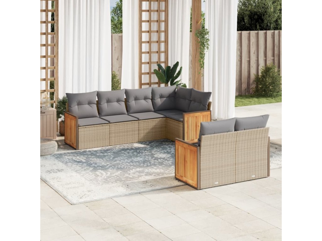 7dílná zahradní sedací souprava s poduškami béžová polyratan 3260225
