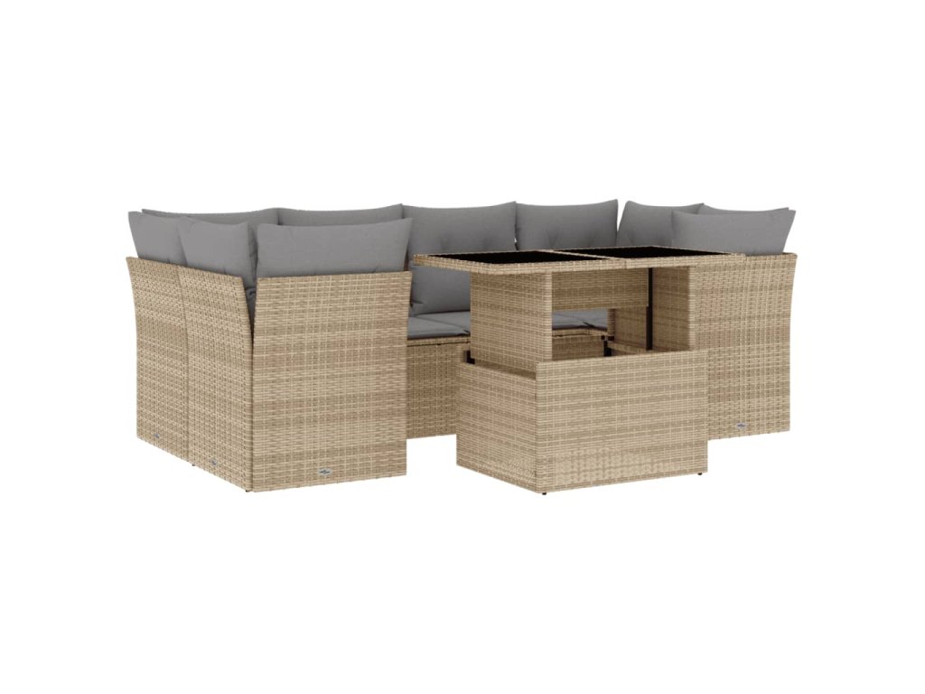 7dílná zahradní sedací souprava s poduškami béžová polyratan 3266379