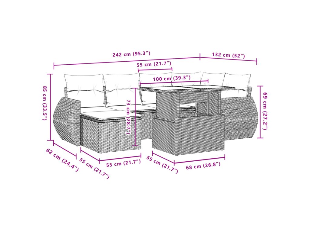 Tato zahradní sedací souprava je dokonalým doplňkem vaší zahrady, terasy nebo dvorku a poskytne vám pohodlné a příjemné místo, kde si můžete povídat s rodinou a přáteli nebo jen tak odpočívat a užívat si pobyt venku.