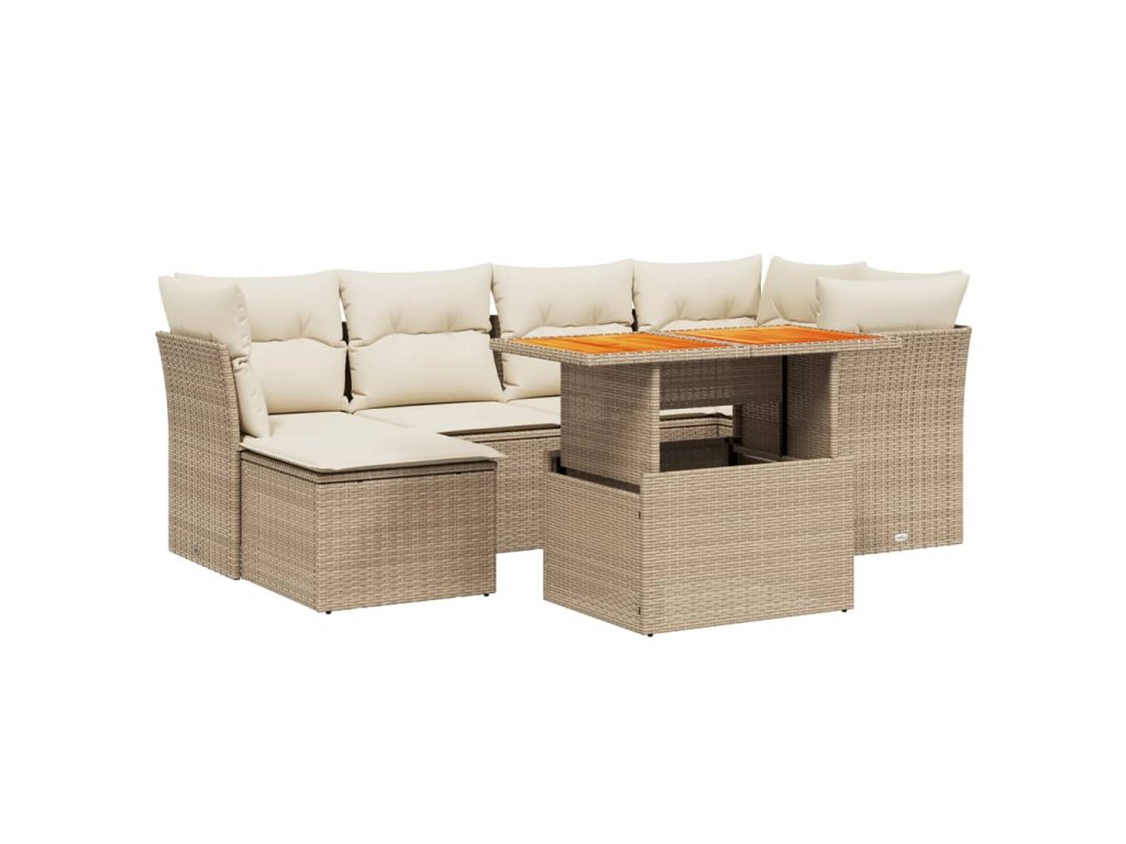 7dílná zahradní sedací souprava s poduškami béžová polyratan 3270939