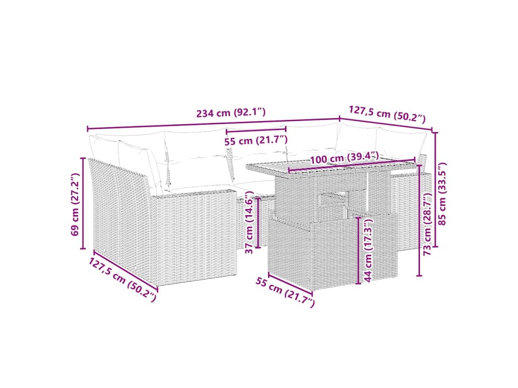 Tato zahradní sedací souprava je dokonalým doplňkem vaší zahrady, terasy nebo dvorku a poskytne vám pohodlné a příjemné místo, kde si můžete povídat s rodinou a přáteli nebo jen tak odpočívat a užívat si pobyt venku.