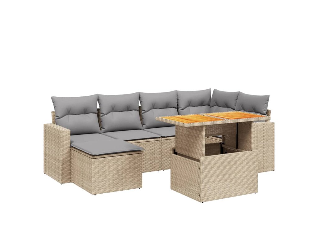 7dílná zahradní sedací souprava s poduškami béžová polyratan 3271416