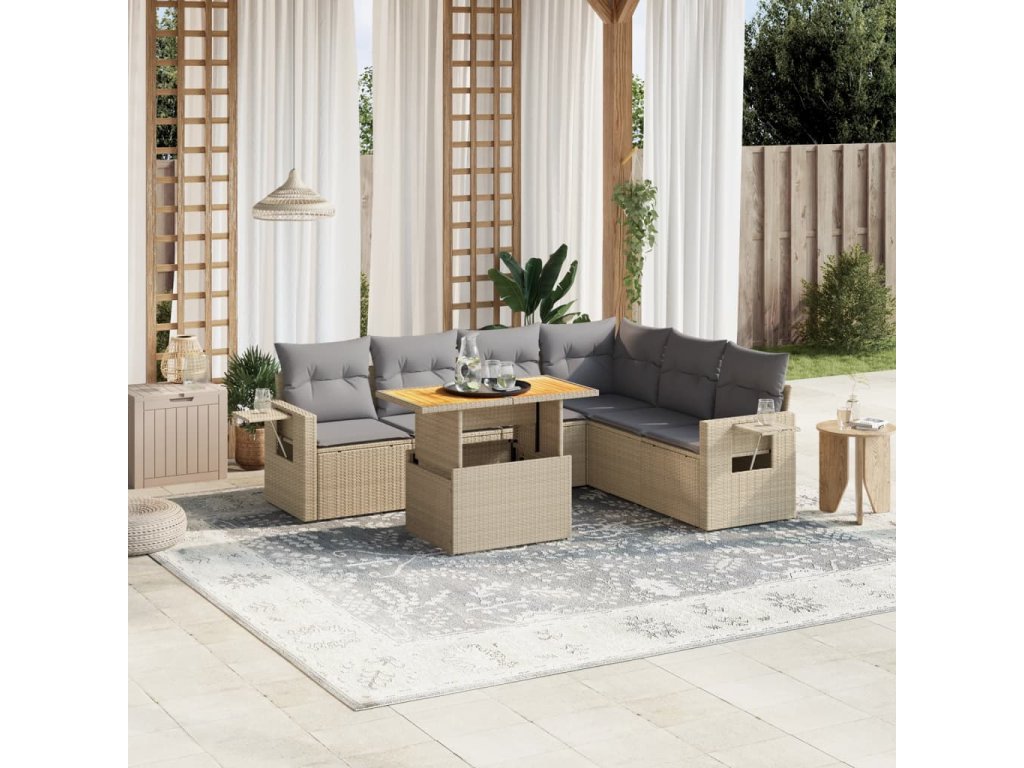 7dílná zahradní sedací souprava s poduškami béžová polyratan 3271773