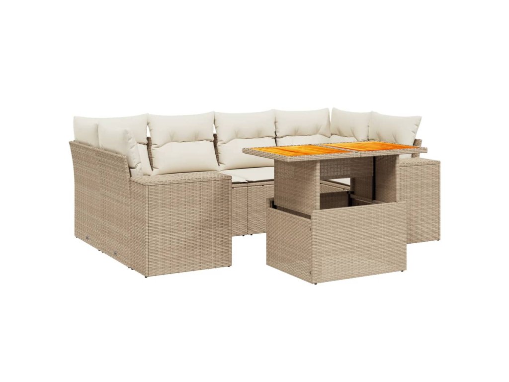 7dílná zahradní sedací souprava s poduškami béžová polyratan 3272535