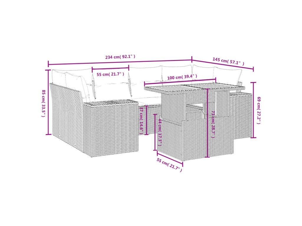 Tato zahradní sedací souprava je dokonalým doplňkem vaší zahrady, terasy nebo dvorku a poskytne vám pohodlné a příjemné místo, kde si můžete povídat s rodinou a přáteli nebo jen tak odpočívat a užívat si pobyt venku.