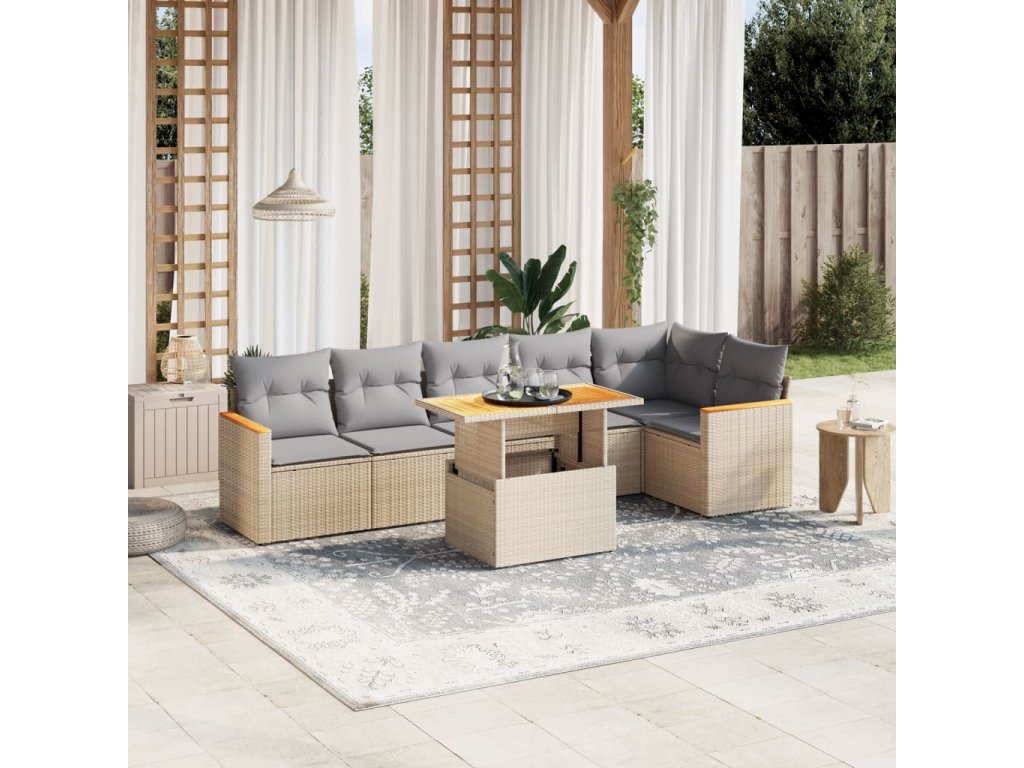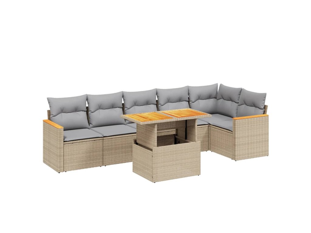 7dílná zahradní sedací souprava s poduškami béžová polyratan 3273089