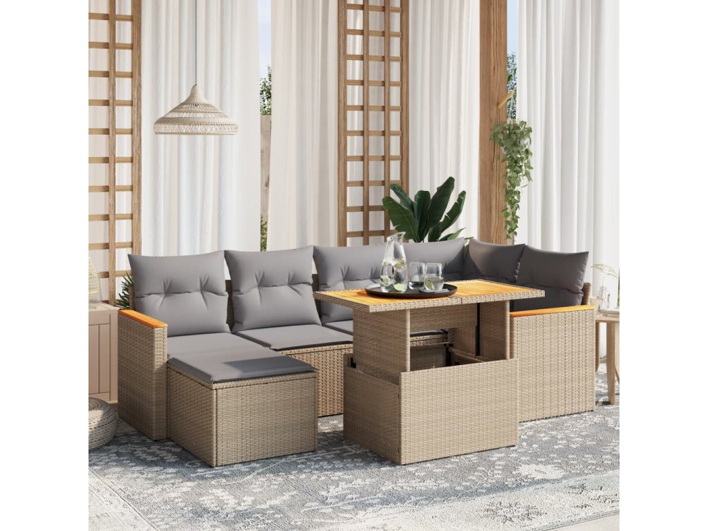 7dílná zahradní sedací souprava s poduškami béžová polyratan 3273180
