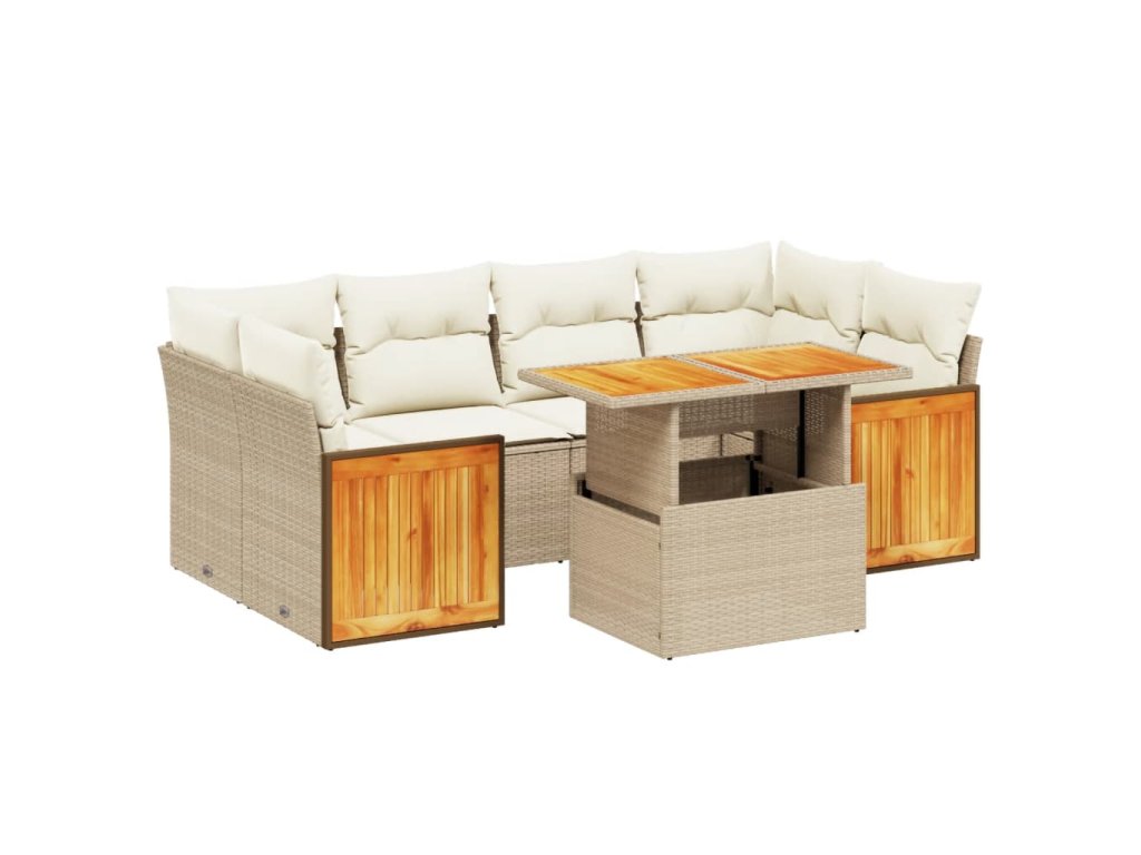 7dílná zahradní sedací souprava s poduškami béžová polyratan 3273858