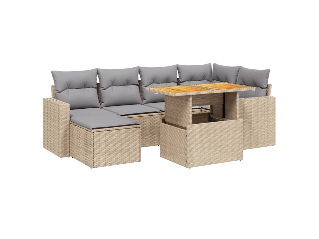 7dílná zahradní sedací souprava s poduškami béžová polyratan 3275593