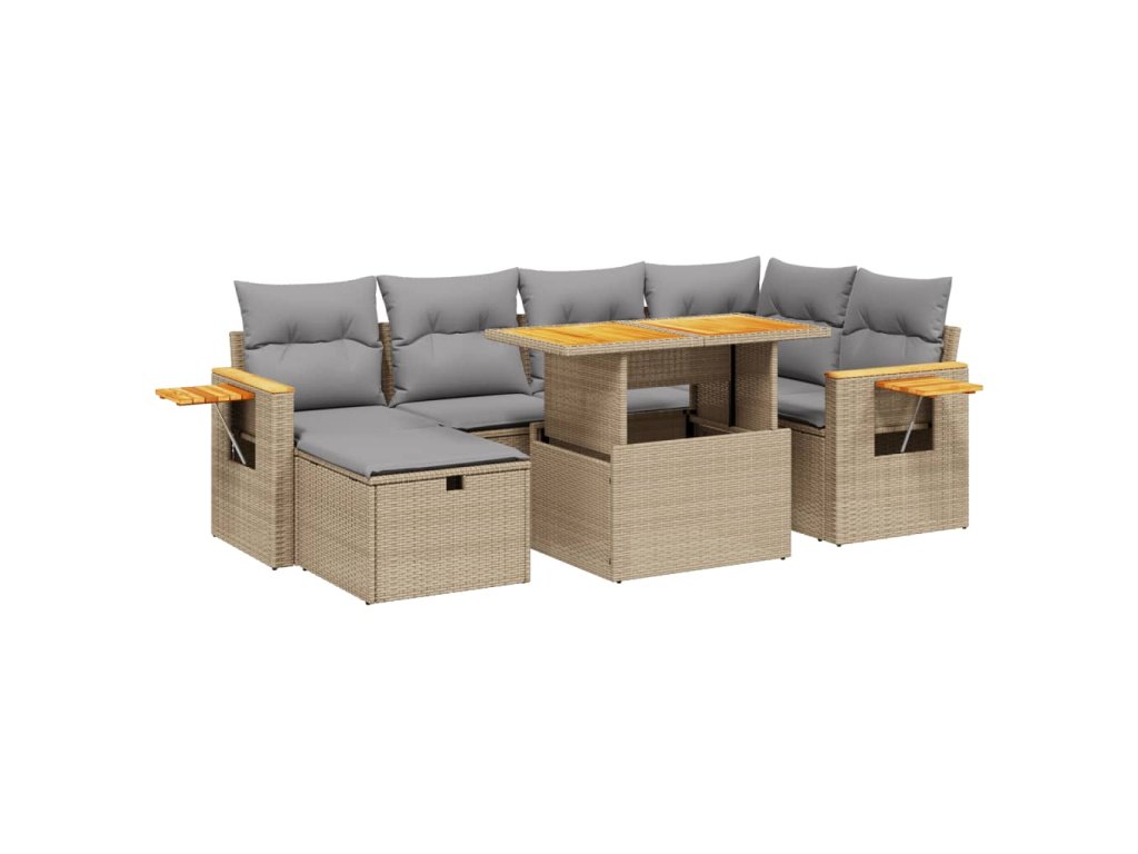7dílná zahradní sedací souprava s poduškami béžová polyratan 3276146