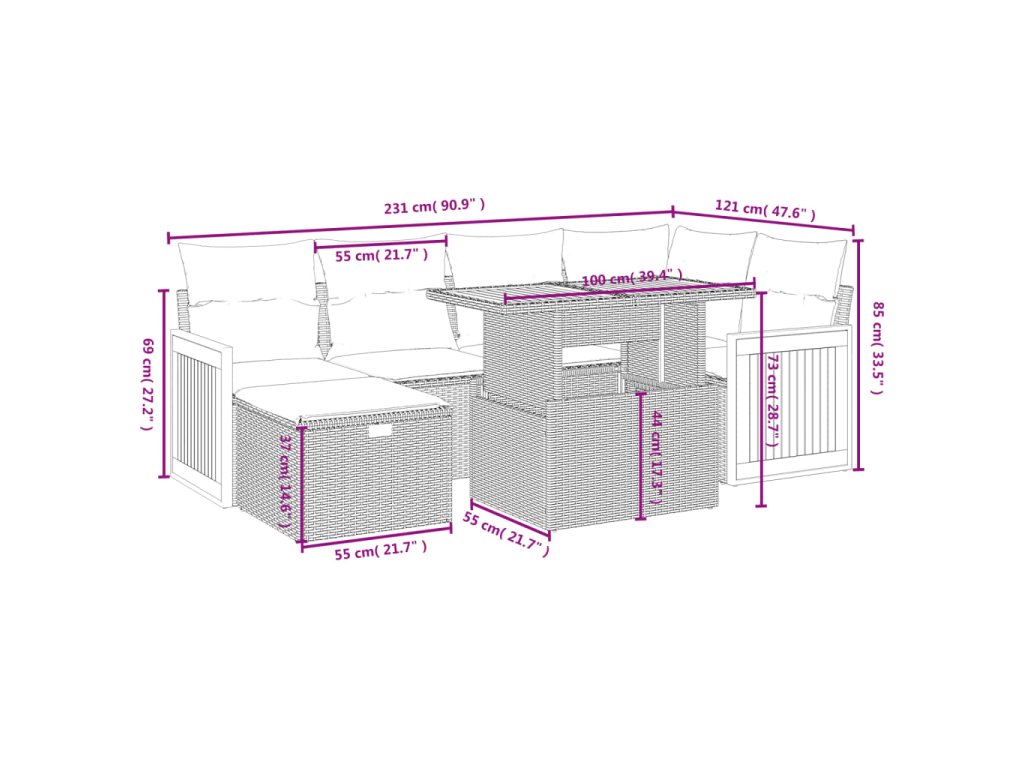 Tato zahradní sedací souprava je dokonalým doplňkem vaší zahrady, terasy nebo dvorku a poskytne vám pohodlné a příjemné místo, kde si můžete povídat s rodinou a přáteli nebo jen tak odpočívat a užívat si pobyt venku.