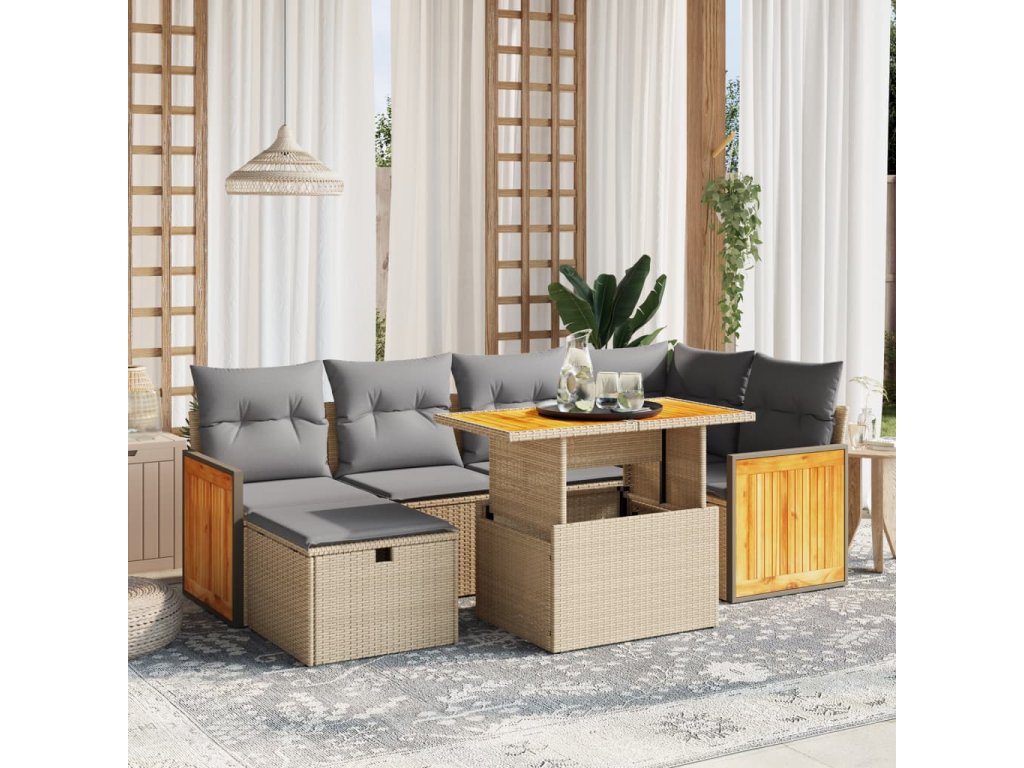 7dílná zahradní sedací souprava s poduškami béžová polyratan 3276251