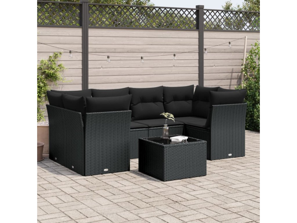 7dílná zahradní sedací souprava s poduškami černá polyratan 3217265