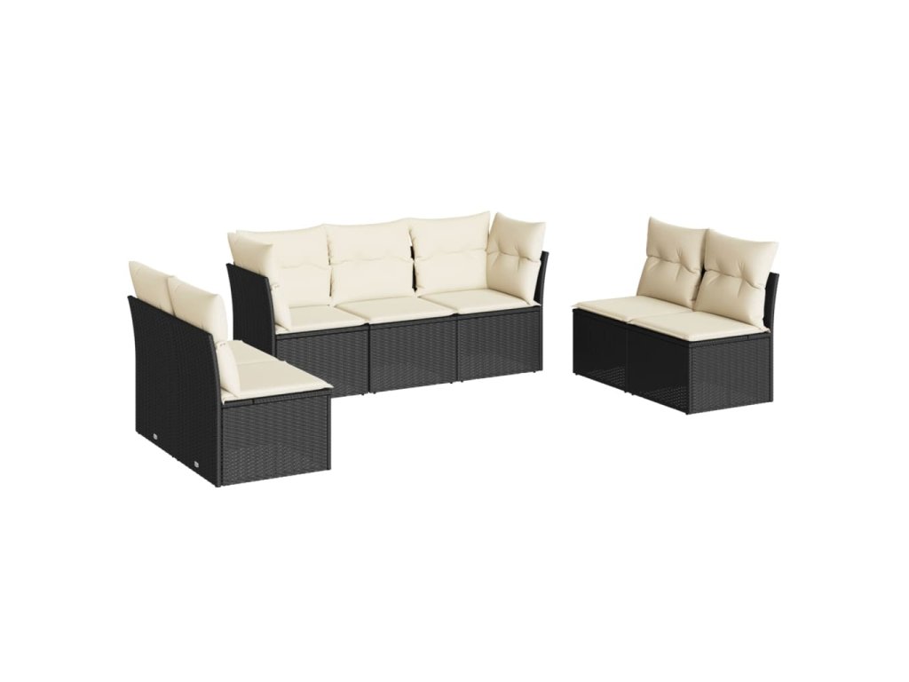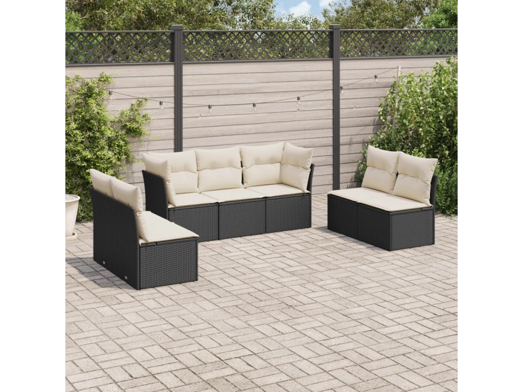 7dílná zahradní sedací souprava s poduškami černá polyratan 3217406
