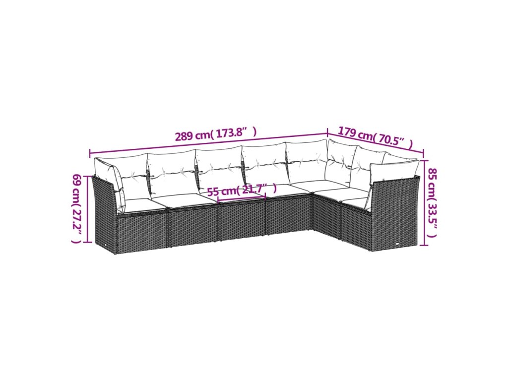 7dílná zahradní sedací souprava s poduškami černá polyratan 3217735