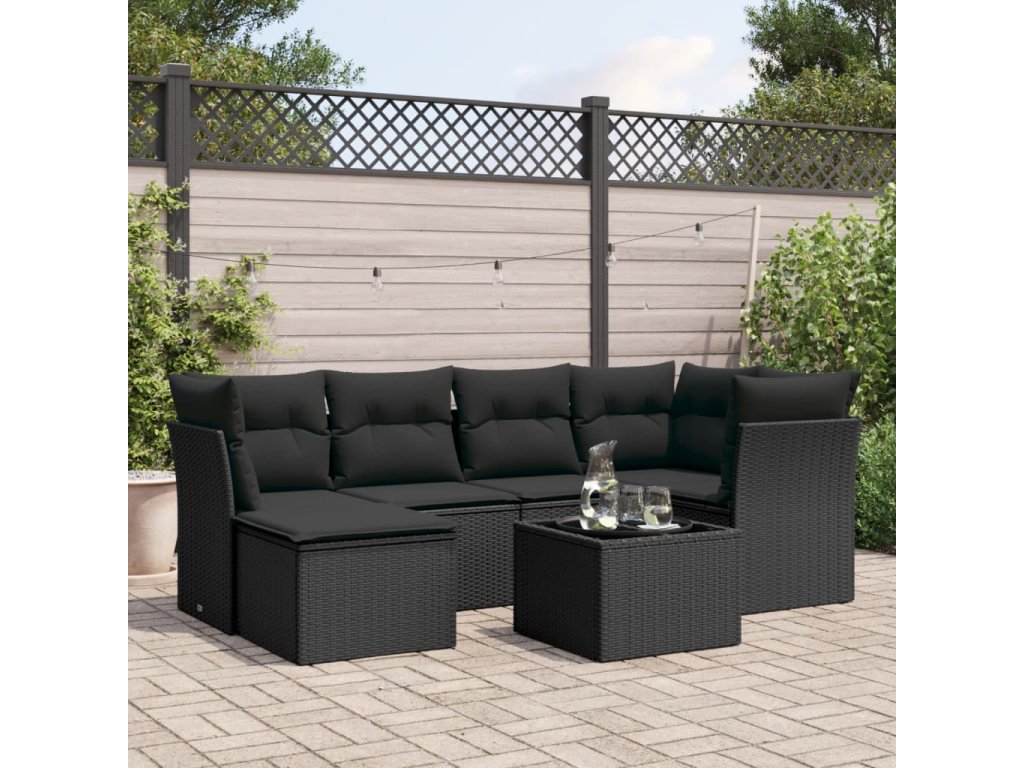 7dílná zahradní sedací souprava s poduškami černá polyratan 3217955