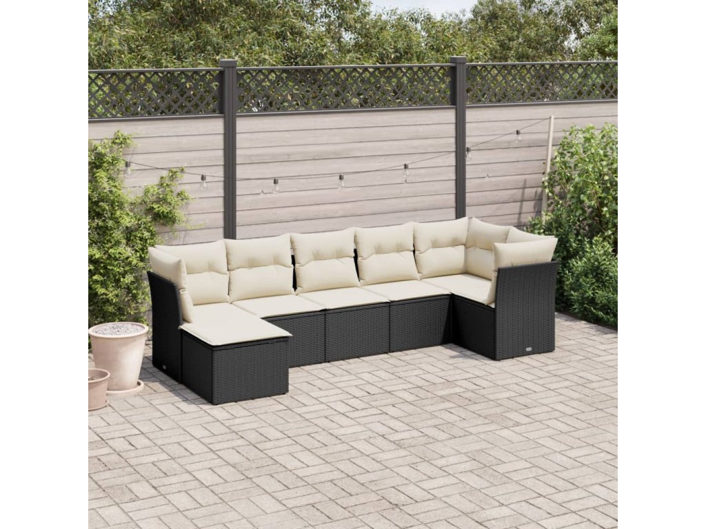 7dílná zahradní sedací souprava s poduškami černá polyratan 3217966
