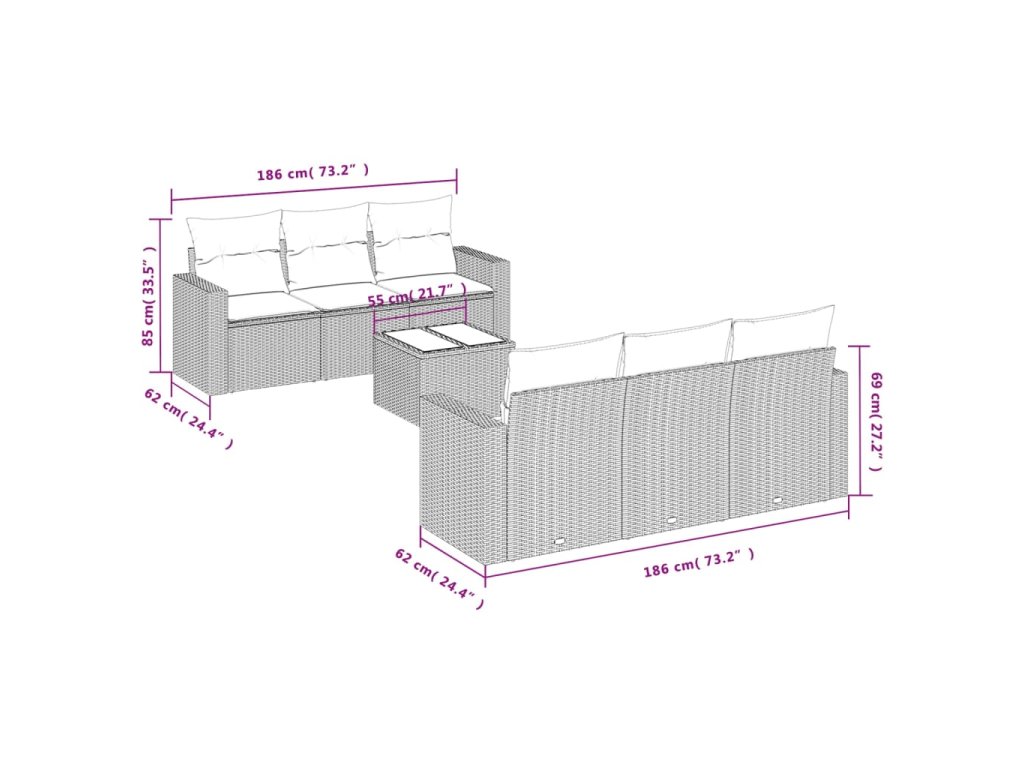 Tato zahradní sedací souprava je dokonalým doplňkem vaší zahrady, terasy nebo dvorku a poskytne vám pohodlné a příjemné místo, kde si můžete povídat s rodinou a přáteli nebo jen tak odpočívat a užívat si pobyt venku.