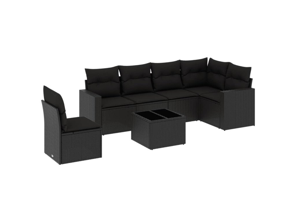 7dílná zahradní sedací souprava s poduškami černá polyratan 3219025