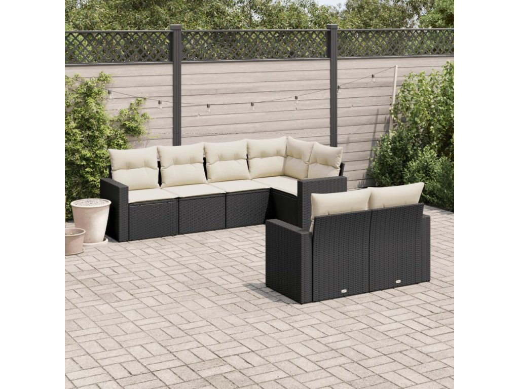 7dílná zahradní sedací souprava s poduškami černá polyratan 3219196