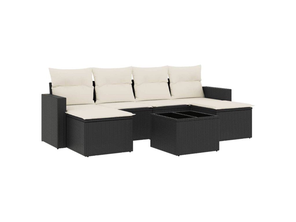 7dílná zahradní sedací souprava s poduškami černá polyratan 3219316