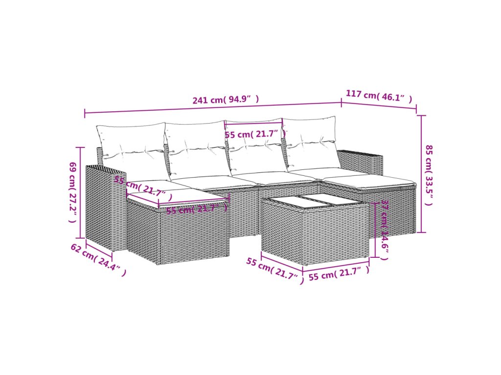 Tato zahradní sedací souprava je dokonalým doplňkem vaší zahrady, terasy nebo dvorku a poskytne vám pohodlné a příjemné místo, kde si můžete povídat s rodinou a přáteli nebo jen tak odpočívat a užívat si pobyt venku.