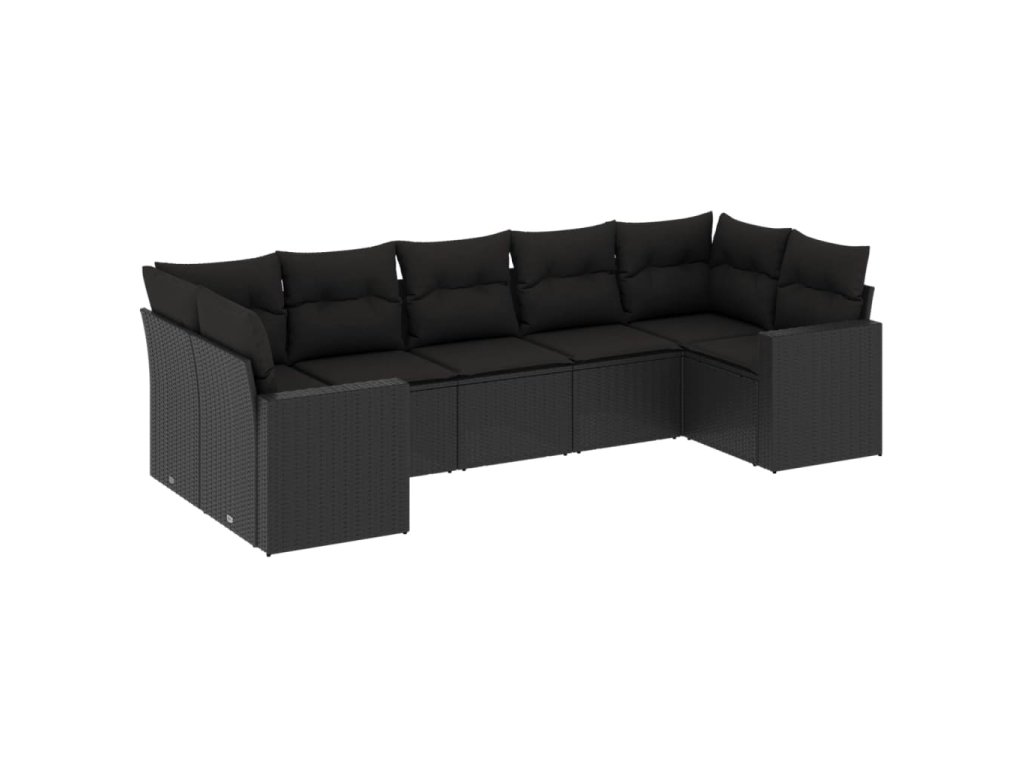 7dílná zahradní sedací souprava s poduškami černá polyratan 3219375