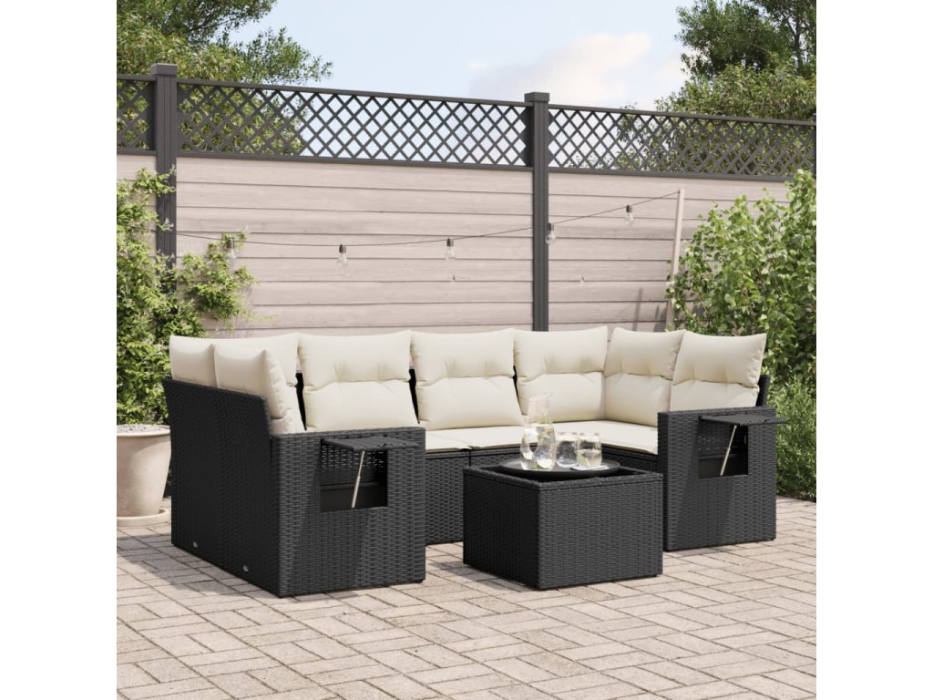 7dílná zahradní sedací souprava s poduškami černá polyratan 3219915