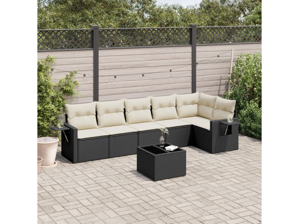 7dílná zahradní sedací souprava s poduškami černá polyratan 3220195