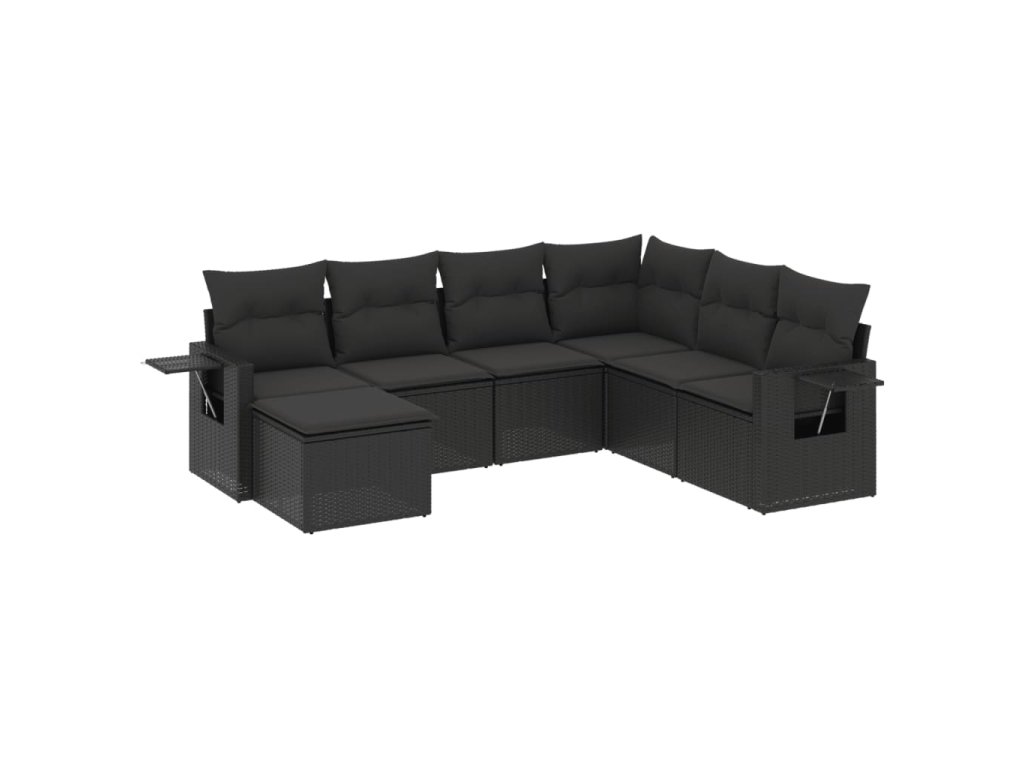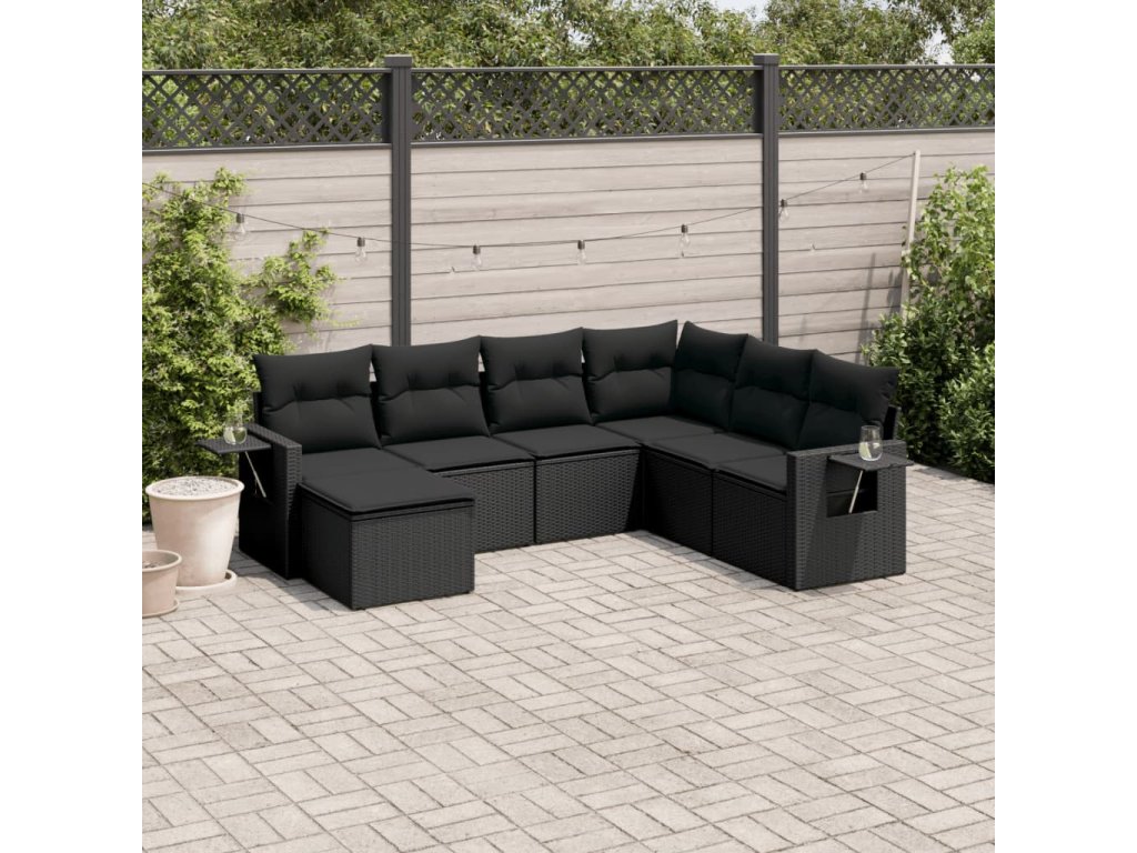 7dílná zahradní sedací souprava s poduškami černá polyratan 3220494