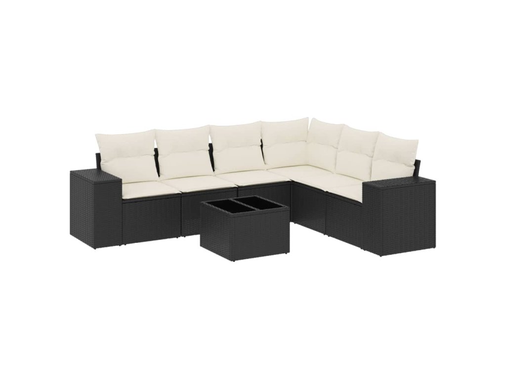 7dílná zahradní sedací souprava s poduškami černá polyratan 3222615