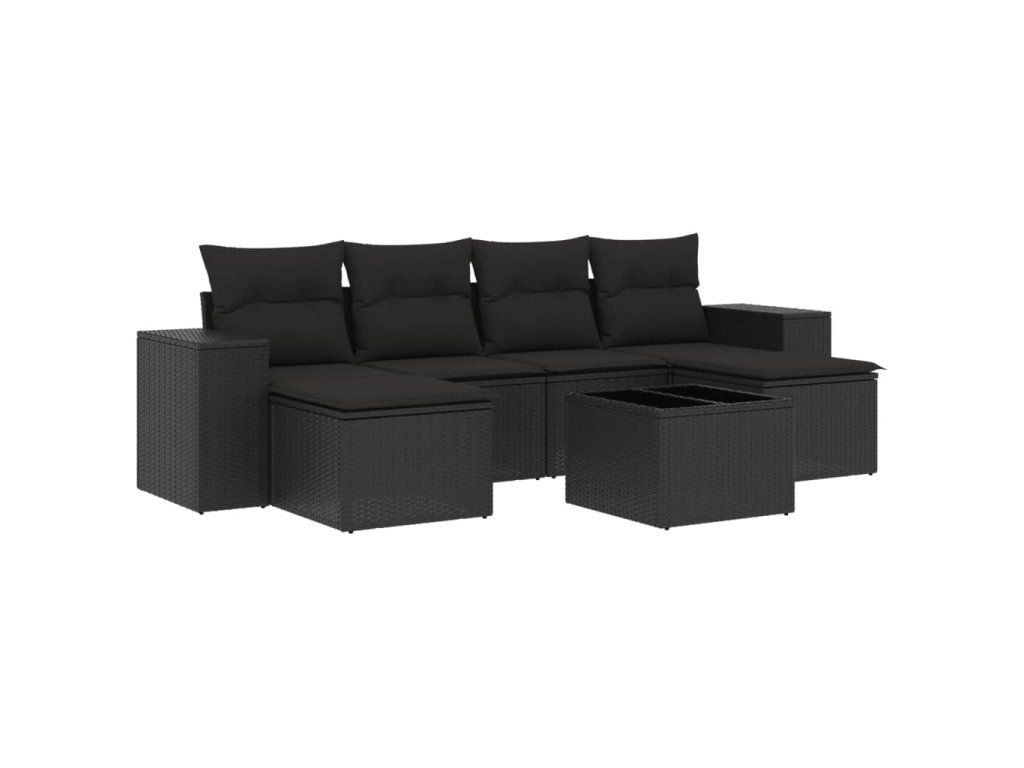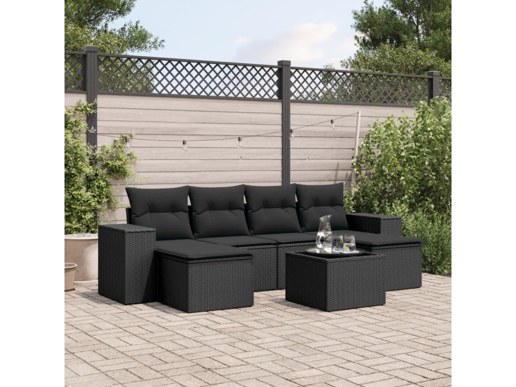 7dílná zahradní sedací souprava s poduškami černá polyratan 3222924
