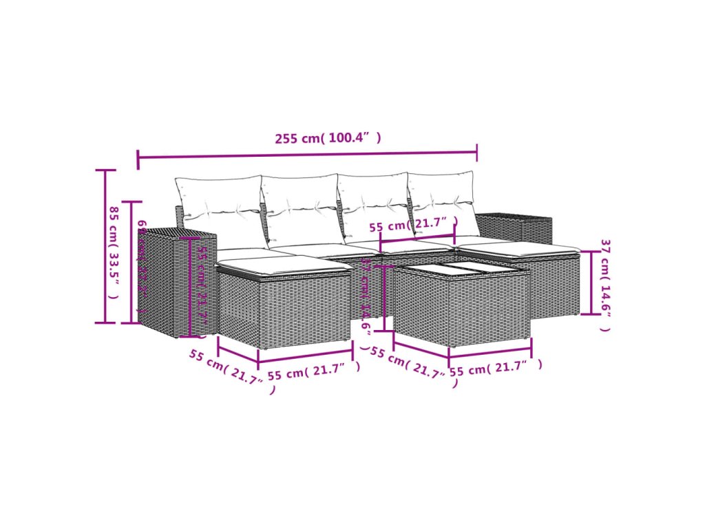 Tato zahradní sedací souprava je dokonalým doplňkem vaší zahrady, terasy nebo dvorku a poskytne vám pohodlné a příjemné místo, kde si můžete povídat s rodinou a přáteli nebo jen tak odpočívat a užívat si pobyt venku.