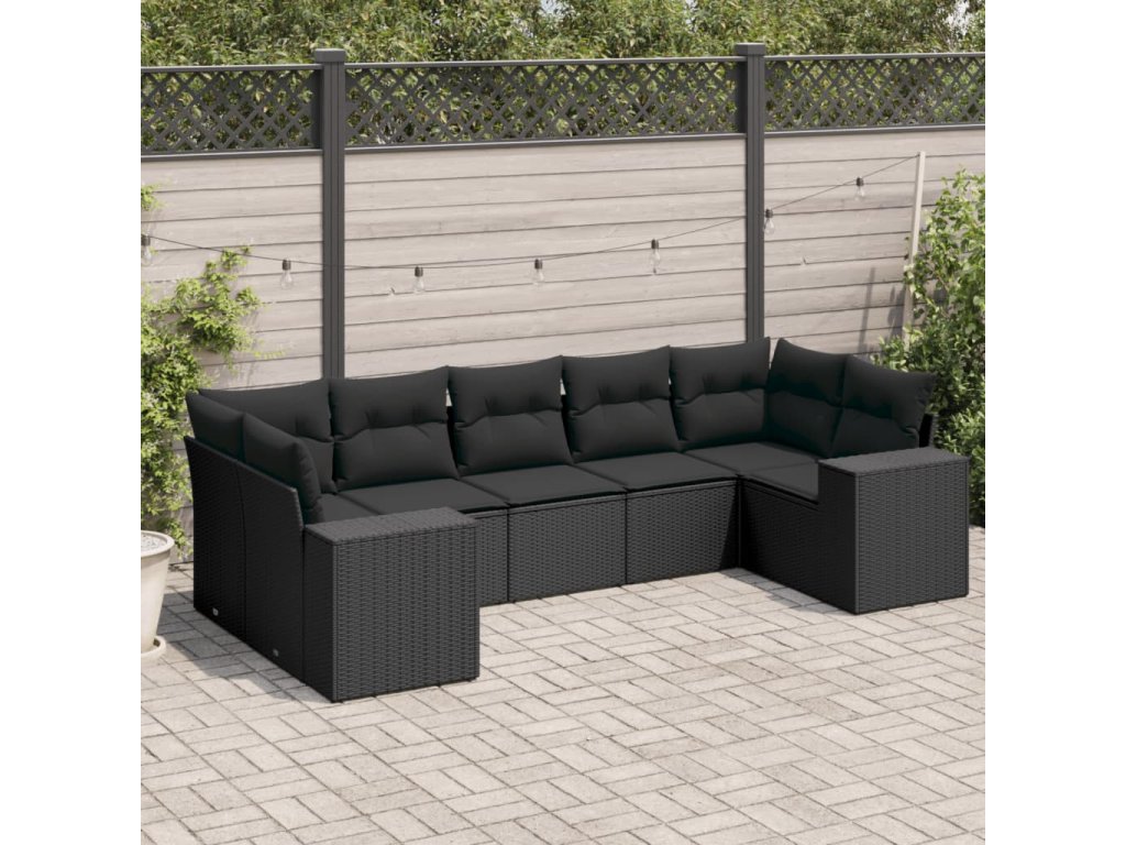 7dílná zahradní sedací souprava s poduškami černá polyratan 3222984
