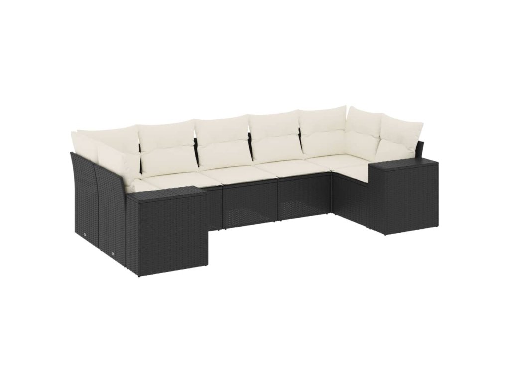 7dílná zahradní sedací souprava s poduškami černá polyratan 3222985