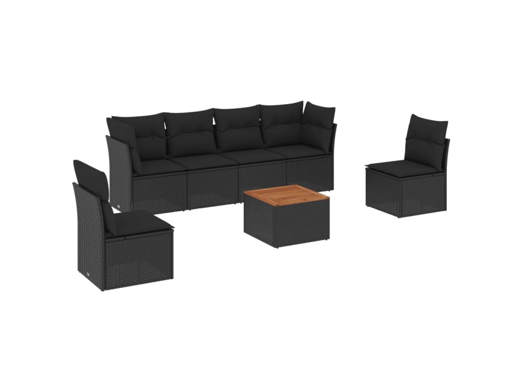 7dílná zahradní sedací souprava s poduškami černá polyratan 3223549