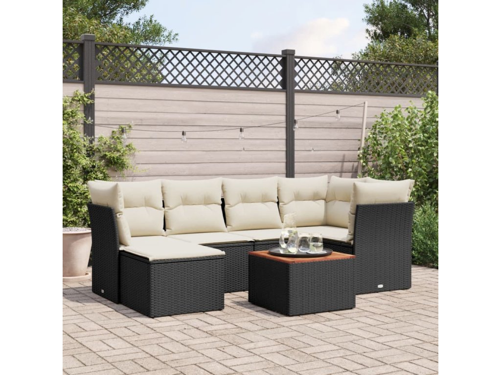 7dílná zahradní sedací souprava s poduškami černá polyratan 3223746