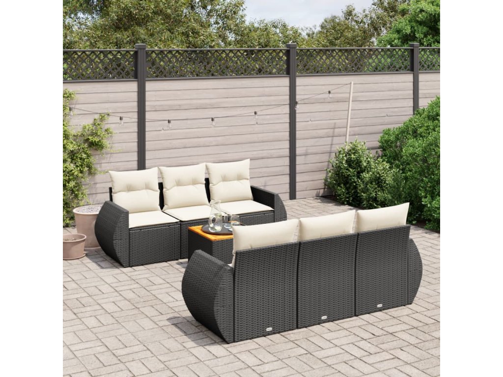 7dílná zahradní sedací souprava s poduškami černá polyratan 3224894