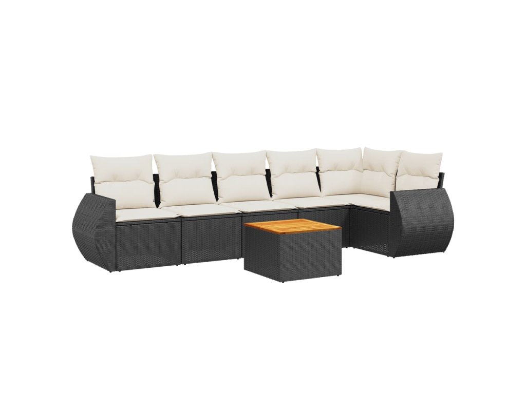 7dílná zahradní sedací souprava s poduškami černá polyratan 3225013