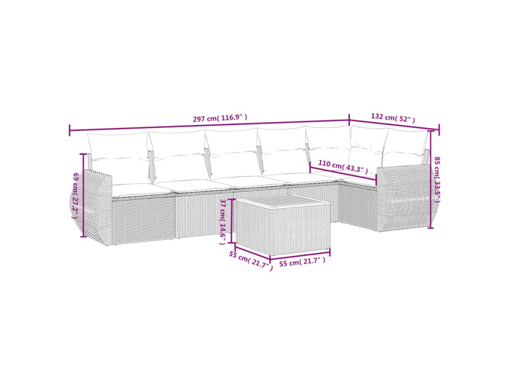 Tato zahradní sedací souprava je dokonalým doplňkem vaší zahrady, terasy nebo dvorku a poskytne vám pohodlné a příjemné místo, kde si můžete povídat s rodinou a přáteli nebo jen tak odpočívat a užívat si pobyt venku.