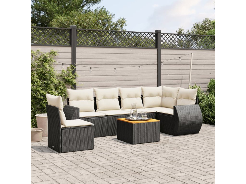 7dílná zahradní sedací souprava s poduškami černá polyratan 3225027